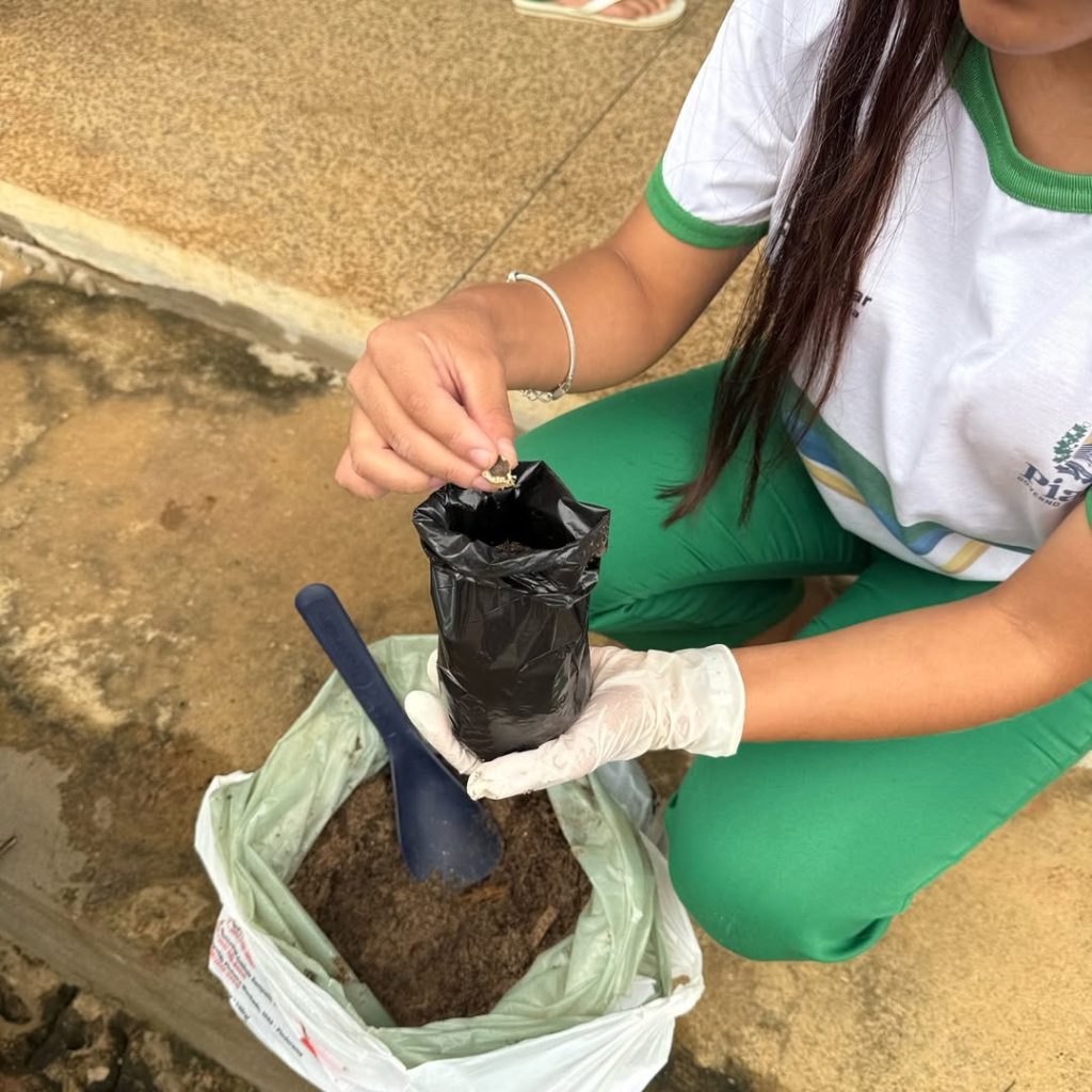 Como desdobramento prático da ação, foram plantadas 11 sementes de ipê-amarelo, que permanecerão sob os cuidados dos estudantes até o desenvolvimento das mudas, as quais futuramente serão transplantadas para o pátio da escola. A atividade simbólica e educativa reforça o compromisso com a sustentabilidade, ao mesmo tempo em que incentiva o protagonismo juvenil e o senso de responsabilidade ambiental.